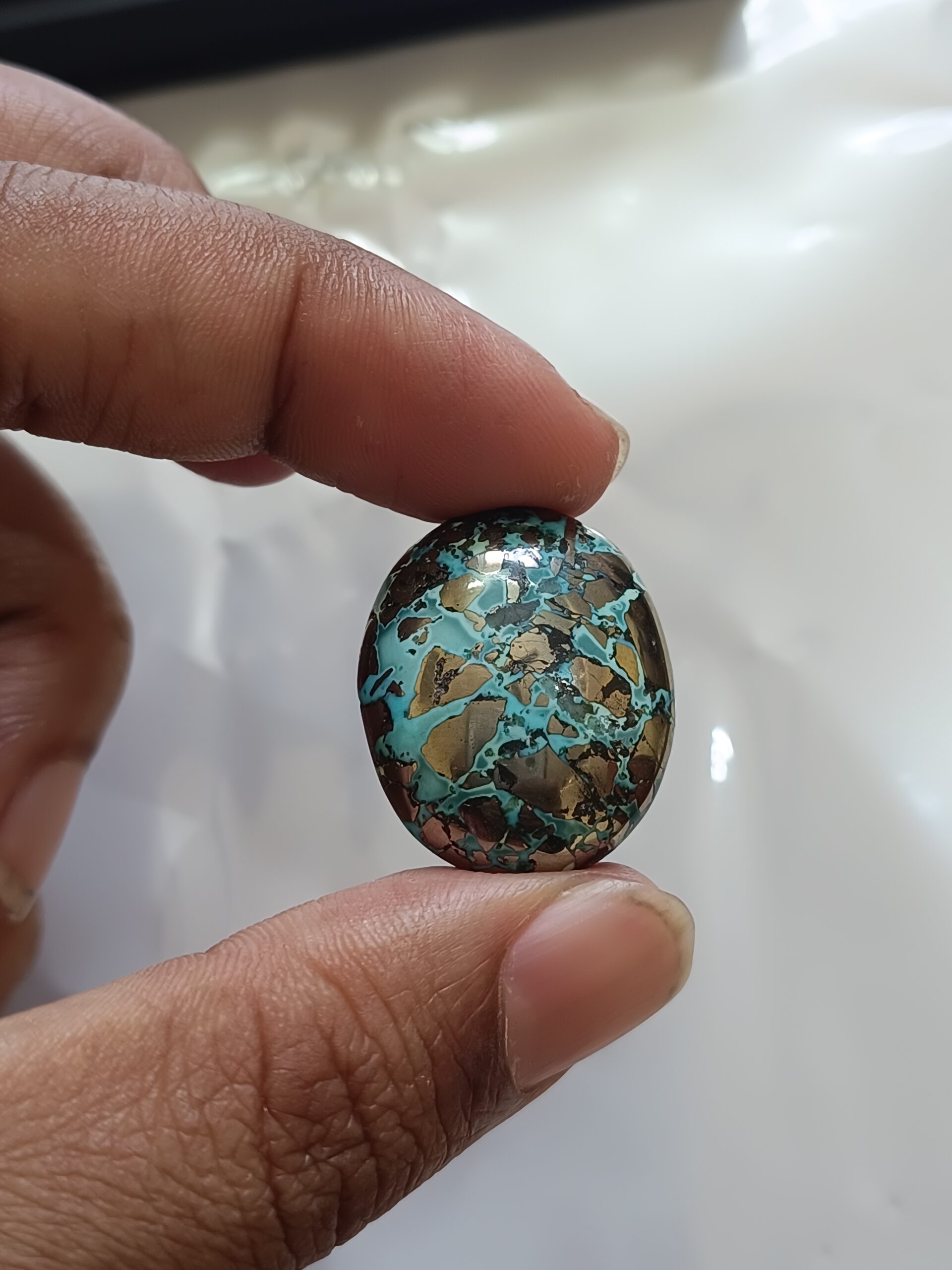 Irani Firoza is a natural stone that comes from Iran. It is also called Irani Firoza Turquoise. This stone is very famous all over the world. The best Irani Firoza stones come from two places in Iran — Nishapur and Kirman. These are the most famous mines in the world for Firoza stone.